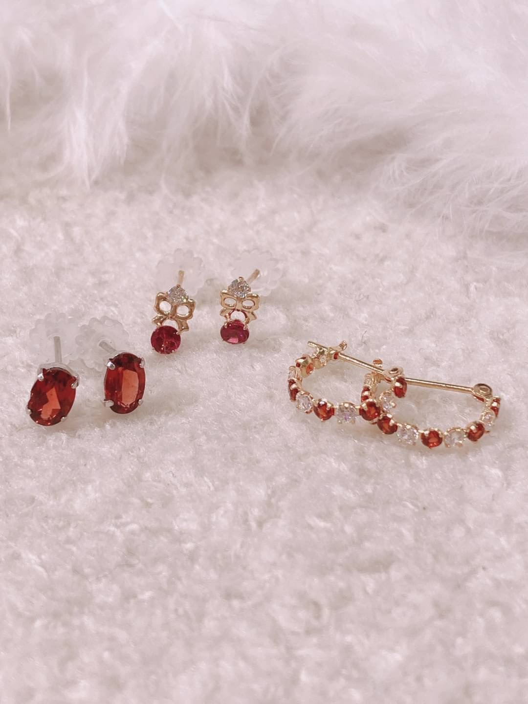マスクをしていると唇が見えないので、お顔に一番近い『耳』に赤色のガーネットピアスをお付けになるとお顔の血色が明るく見える効果もございます💕