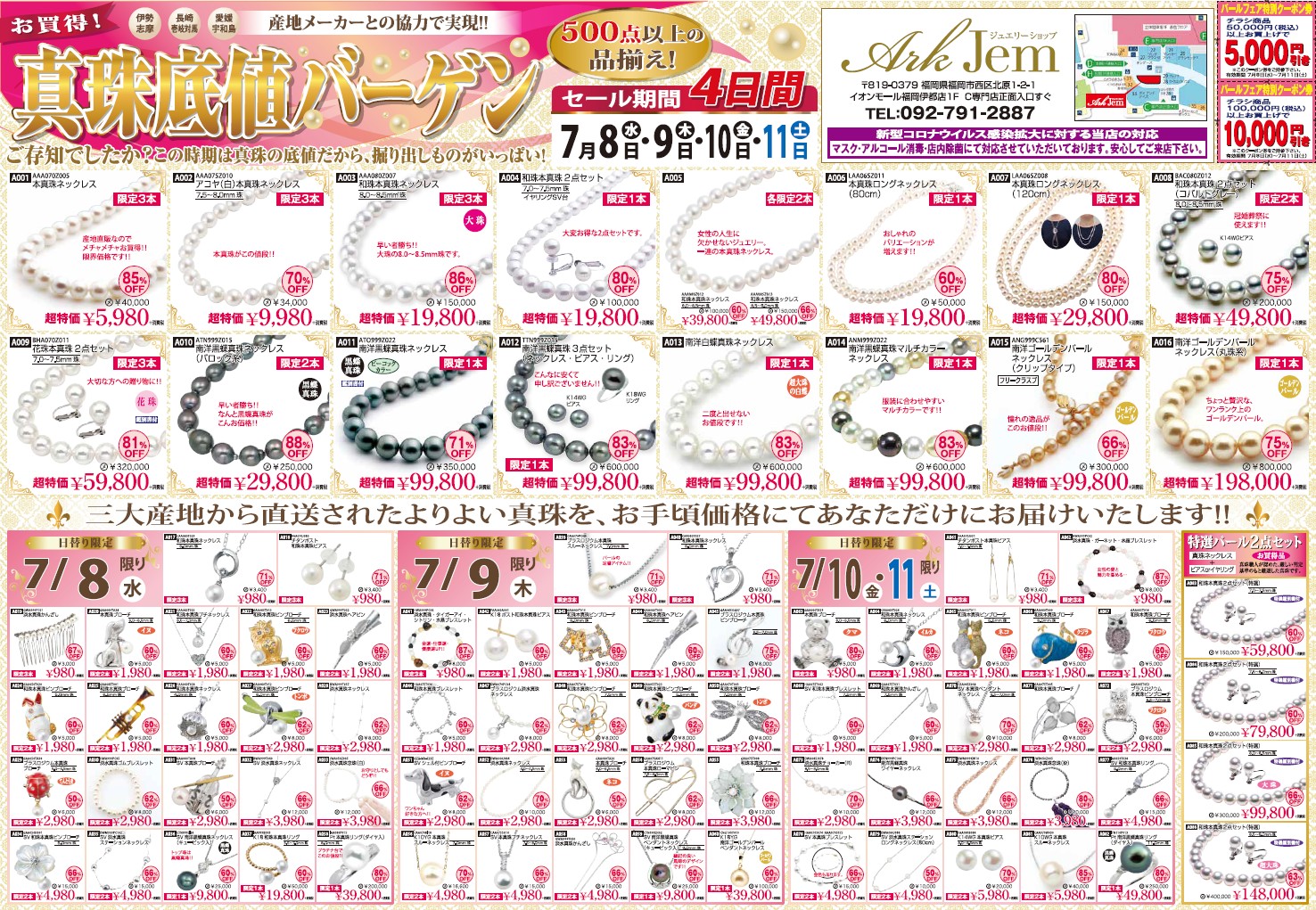 明日7月8日(水)〜11日(土)は真珠バーゲン開催‼️