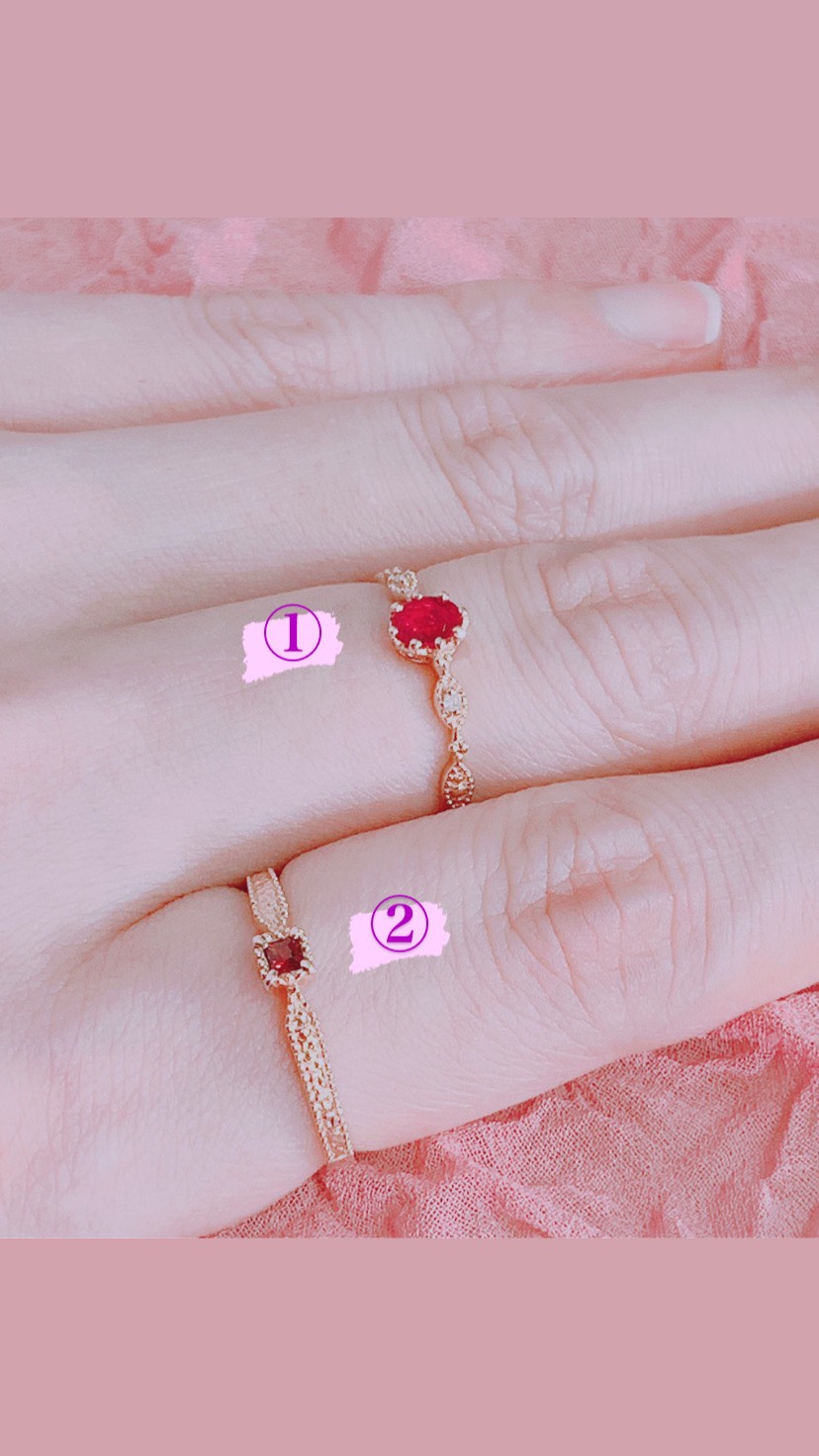①K10ピンクゴールド ルビー/ダイヤ リング:¥38,500(込)