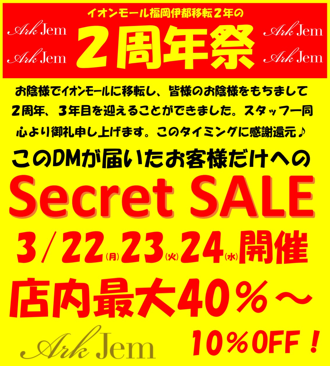 3/22(月)〜24日(水)に当店にて『2周年祭』開催いたします😆💕