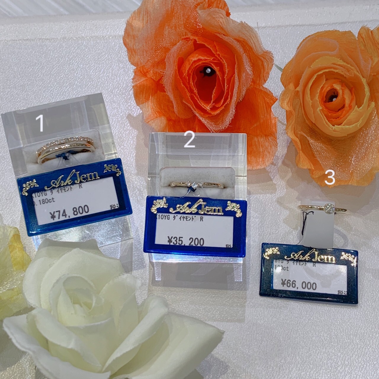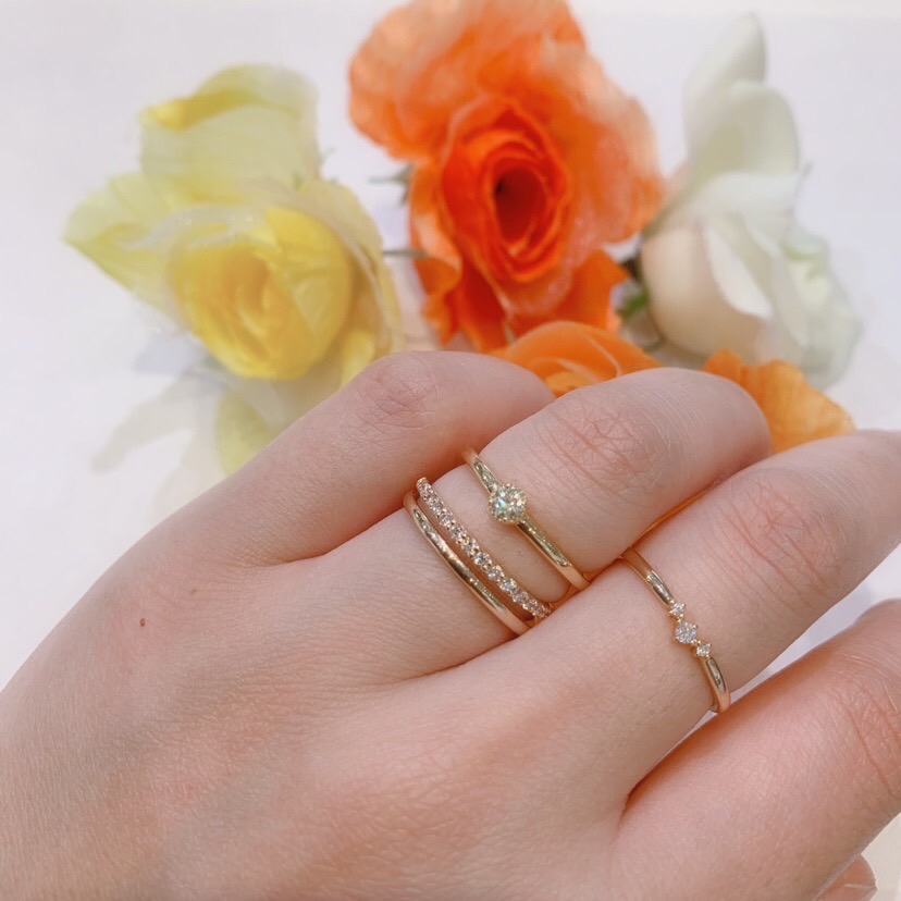 どのリングもダイヤモンドがあしらわれており、イエローゴールドとの組み合わせによって、ダイヤモンドの輝きを引き立たせてくれます✨