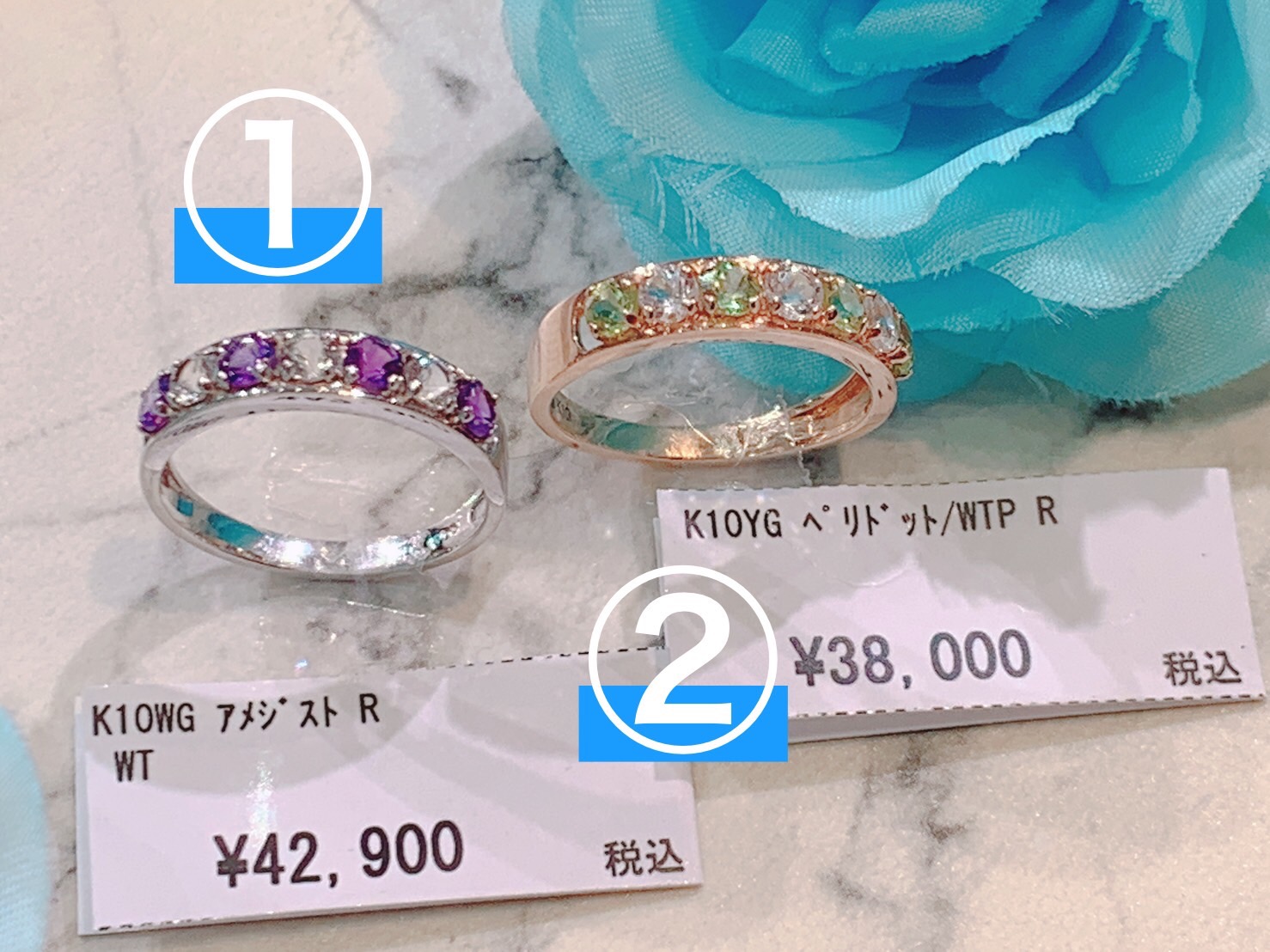 ①K10ホワイトゴールド アメジストリング:¥42,900(込)