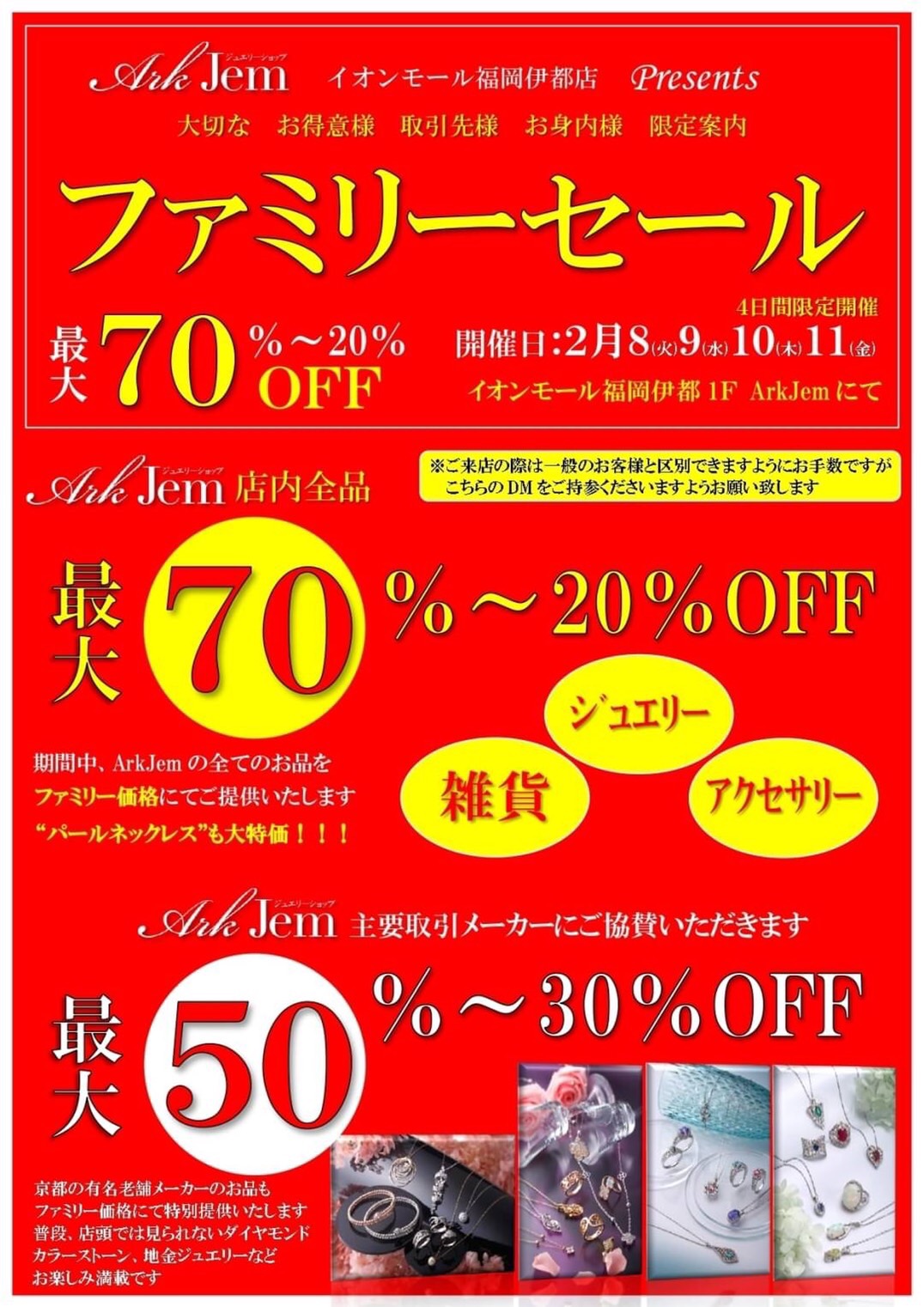 いつもご愛顧頂く大切なお客様へ、感謝を込めて、お得意様限定のファミリーセールを開催致します✨✨