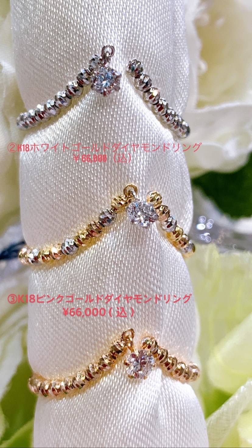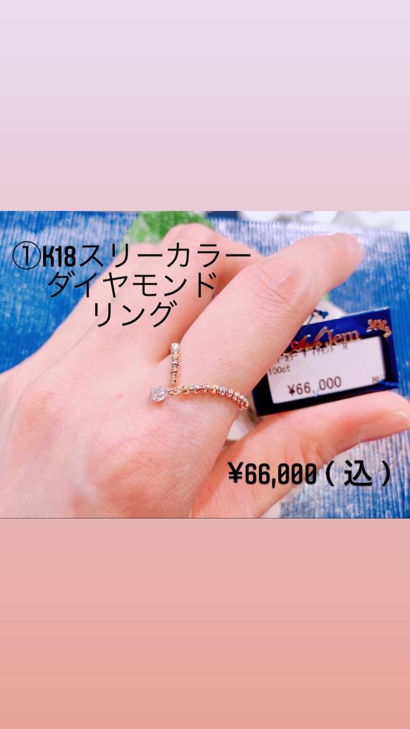 ①k18スリーカラー ダイヤモンドリング:¥66,000(込)