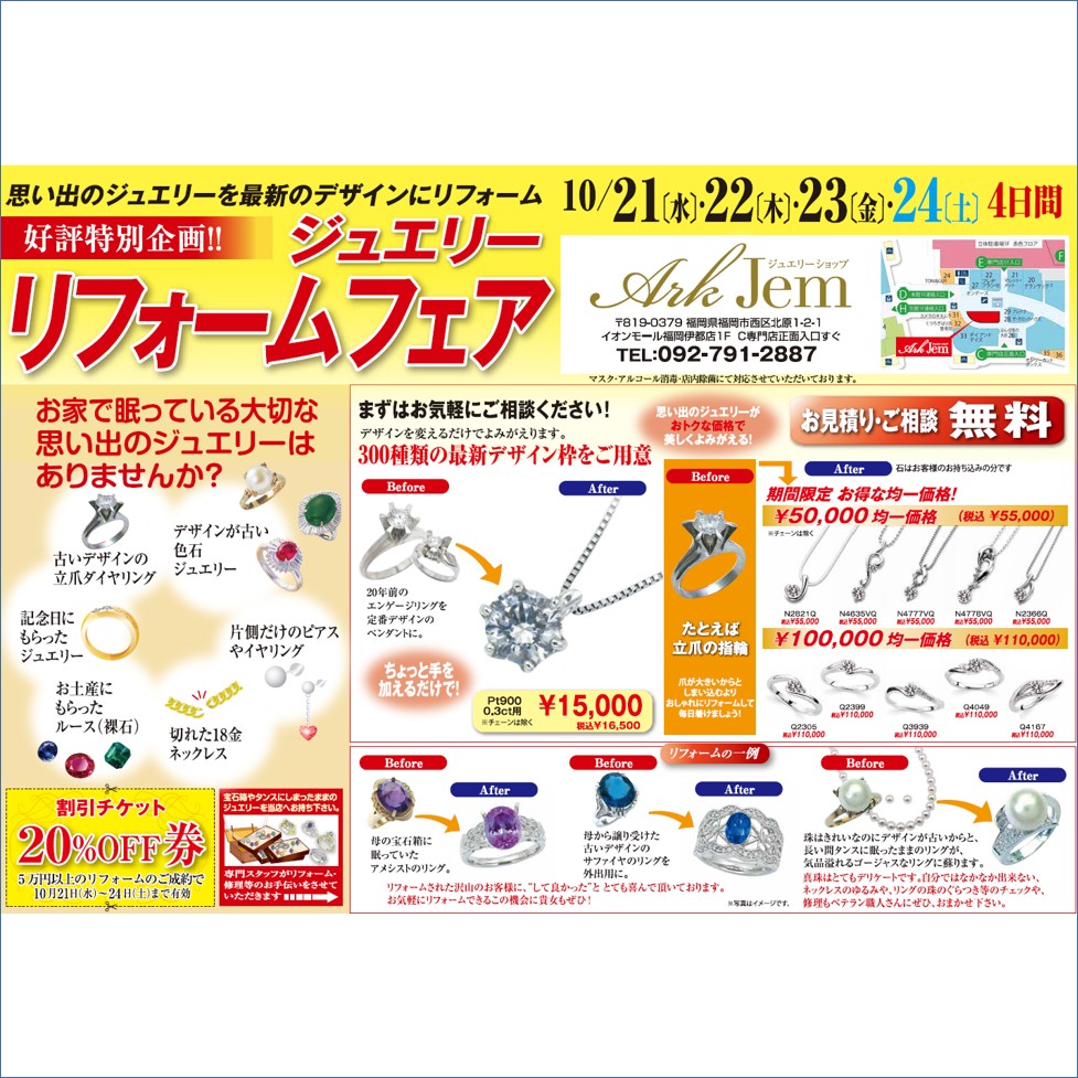 #福岡 #マリッジリング #エンゲージリング #結婚指輪 #婚約指輪 #ブライダル #ブライダルリング #ジュエリーリフォーム #宝石 #買取 #下取り #arkjem #アークジェム #西区 #オーダージュエリー #プレゼント #福岡市 #伊都イオン#ジュエリー修理 #贈り物 #ギフト #デイリーユース #ジュエリークリニック #リフォームフェア #サイズ直し #チェーン切れ #パール糸替え