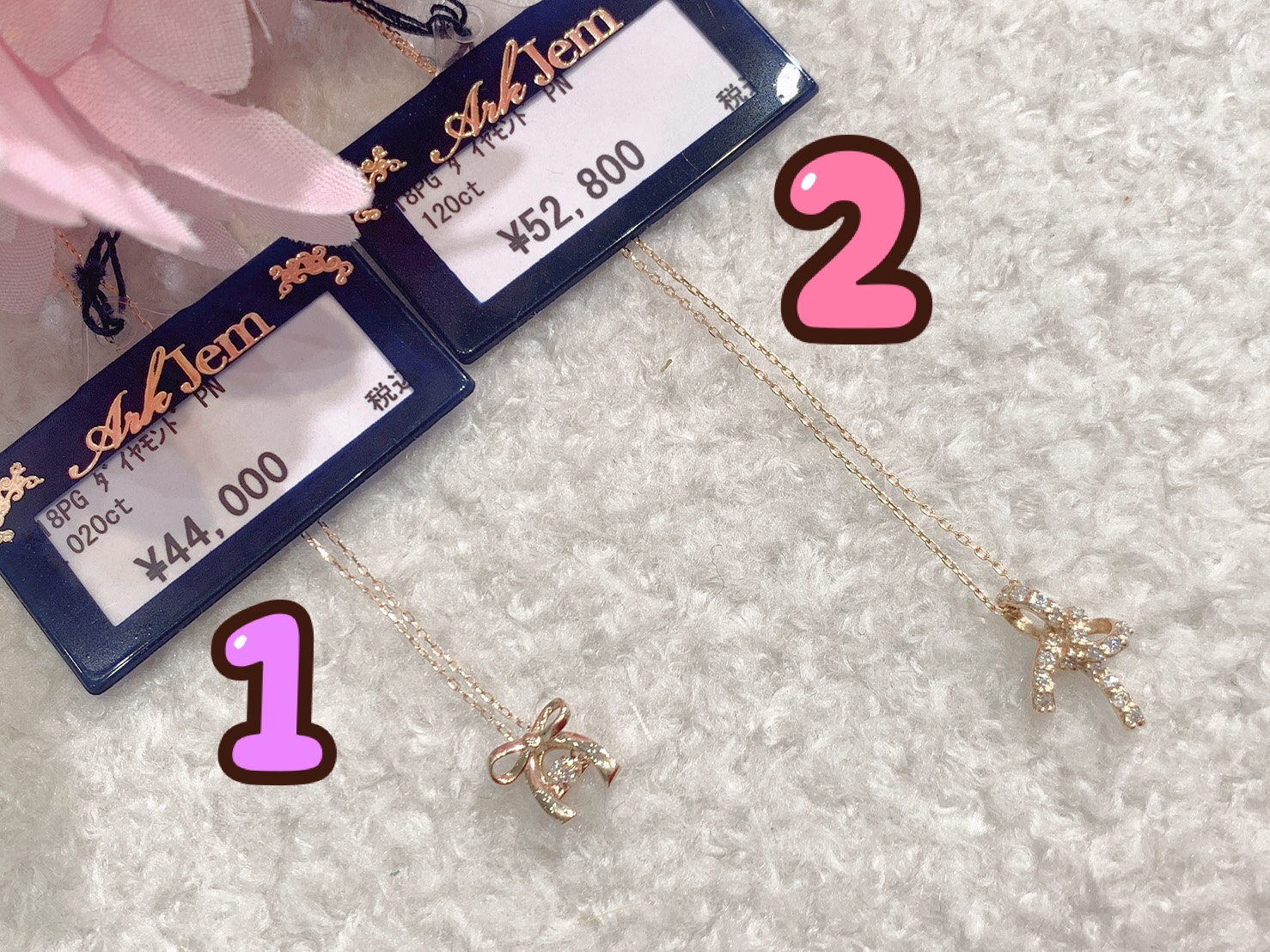 ①k18ピンクゴールド ダイヤモンド ネックレス:¥44,000(込)