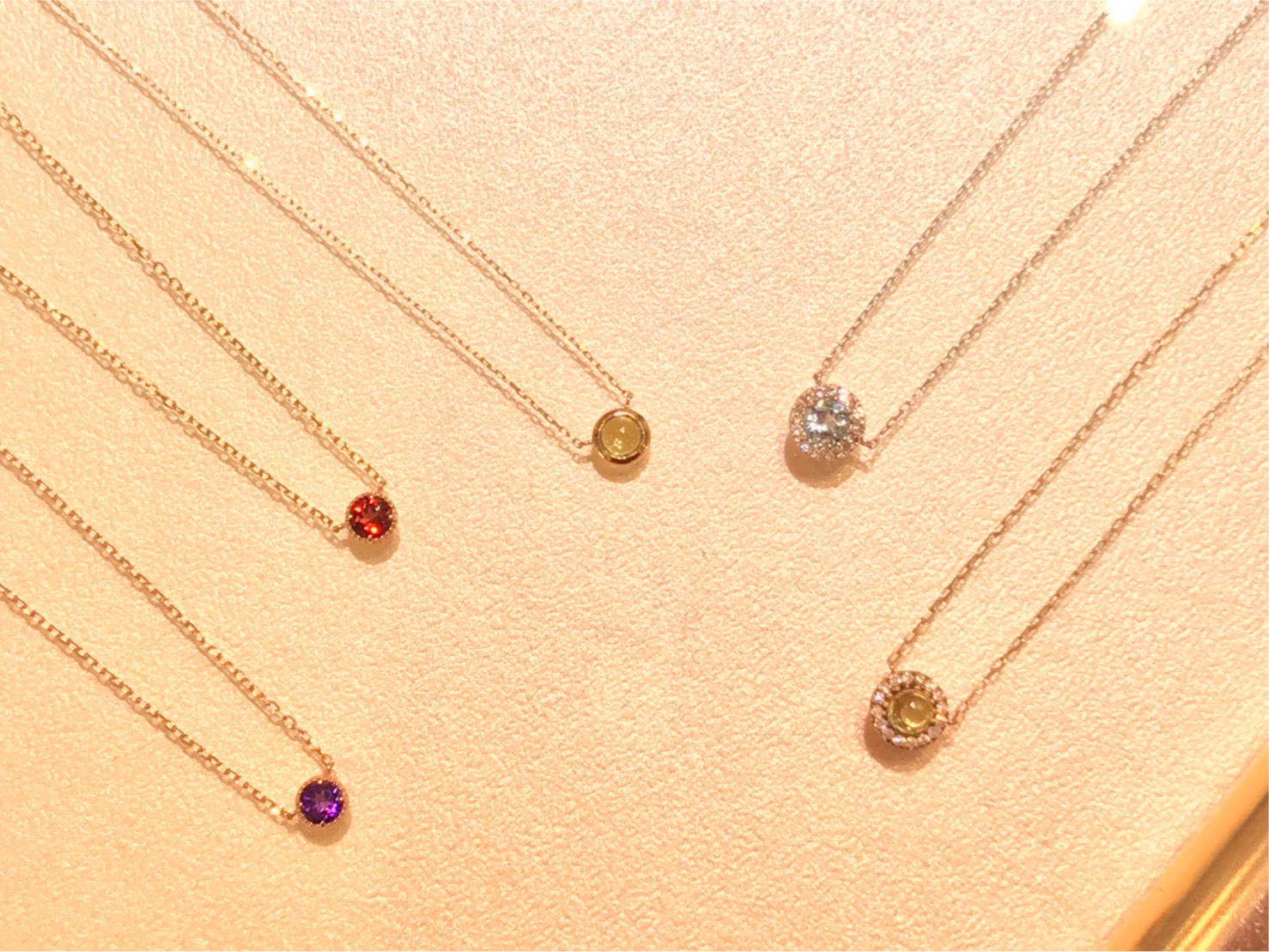 一粒石のネックレスは一本で使っても素敵ですが、重ね付けをした方がより存在感が増して、おしゃれ度も上がります👌☀️