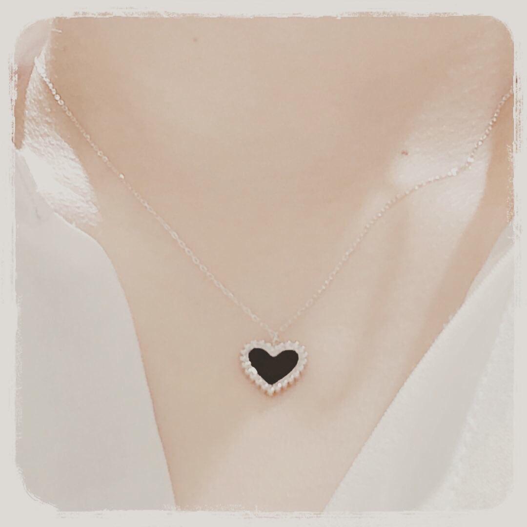 ハートモチーフの中に白いシェルと黒いオニキスが入った新作ネックレスが入荷致しました🖤