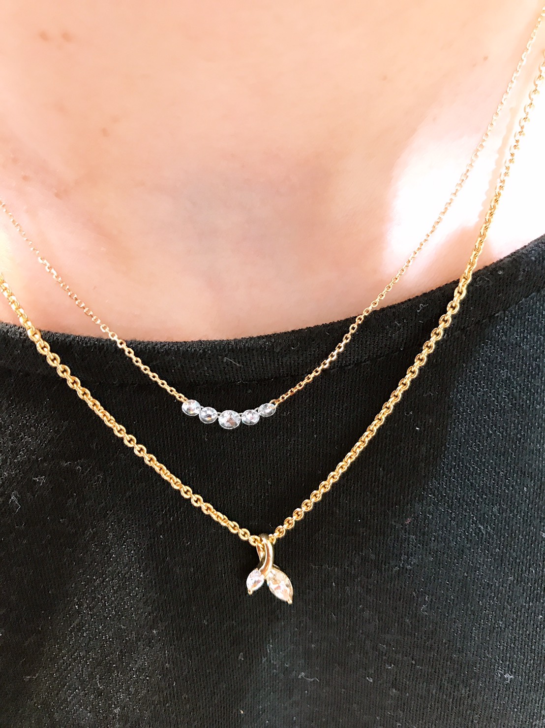 ナチュラルなデザインは胸元にぬくもりを感じさせてくれます