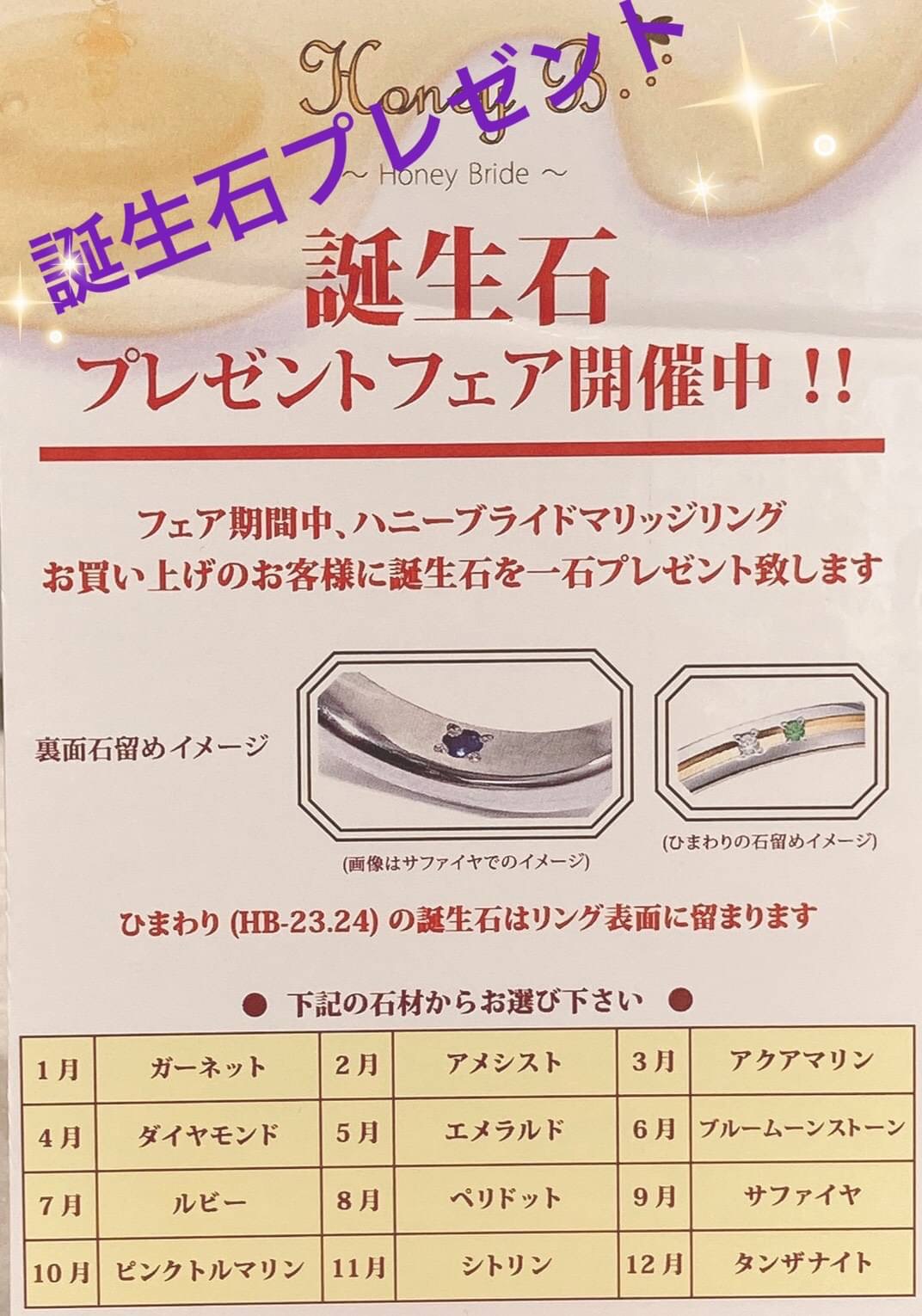 ただいまブライダルリングで大人気の「ハニーブライド」マリッジリングをお買い上げのお客様にリングの裏側(一部表面)に誕生石を1石サービスでお入れ致します💍✨✨