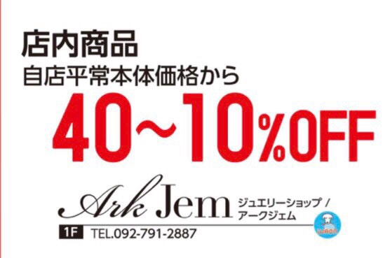 店内商品、自店平常本体価格から40%〜10%OFFとなっております💕