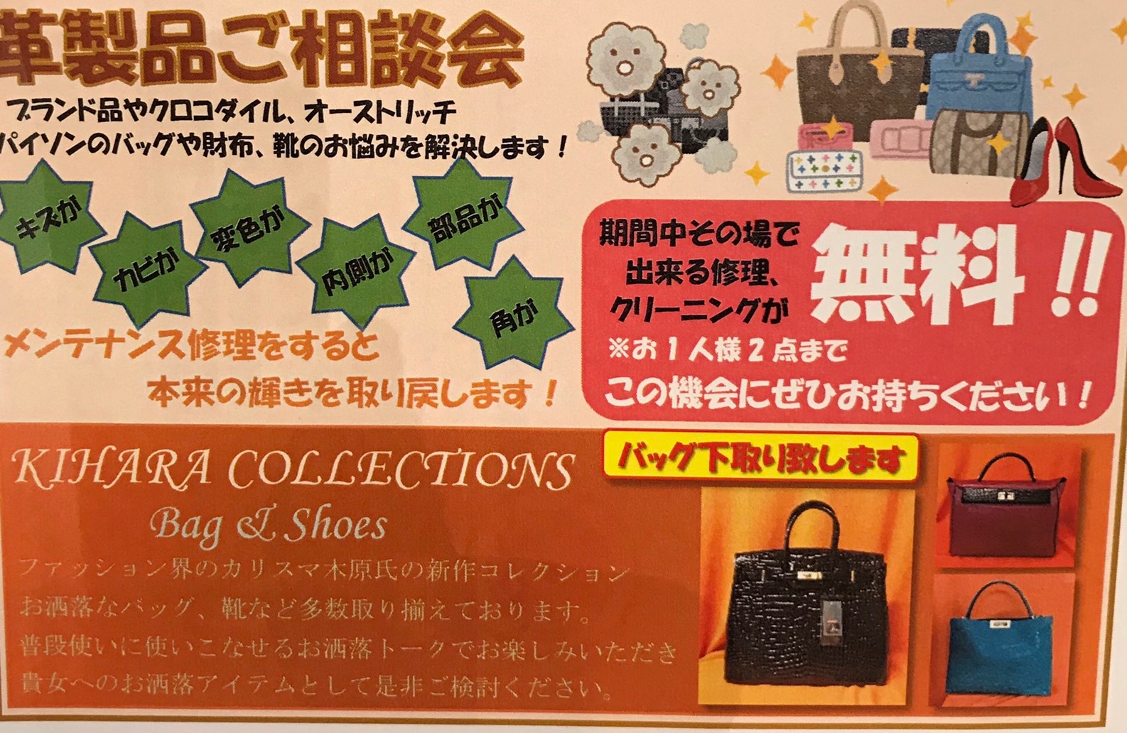 そしてお手持ちの革製品のクリーニングや店頭での可能なお修理が2点まで無料✨な『革製品のご相談会』は本日がラストです👜✨