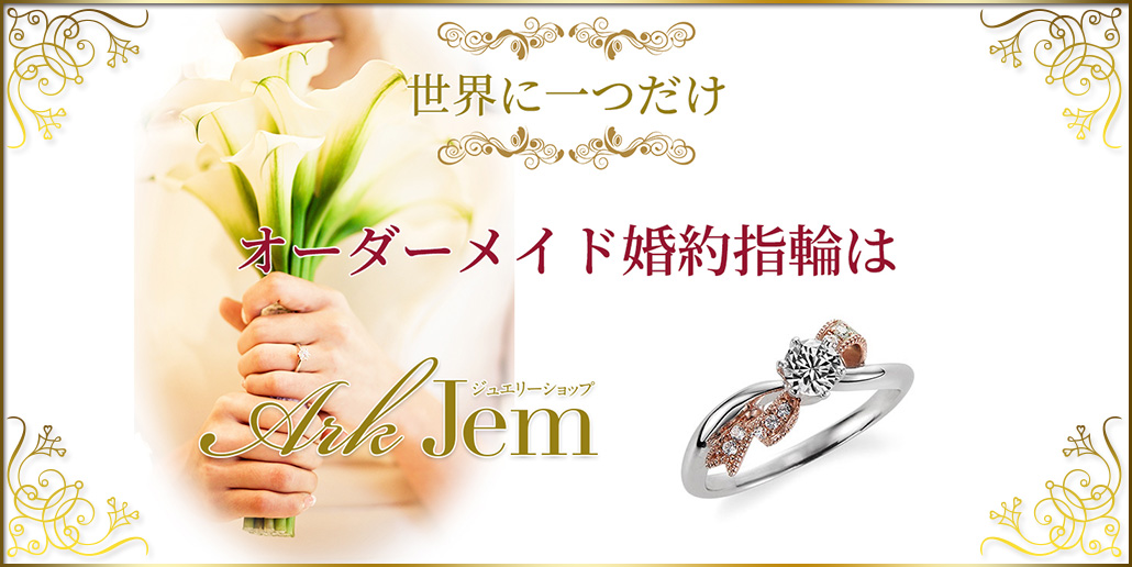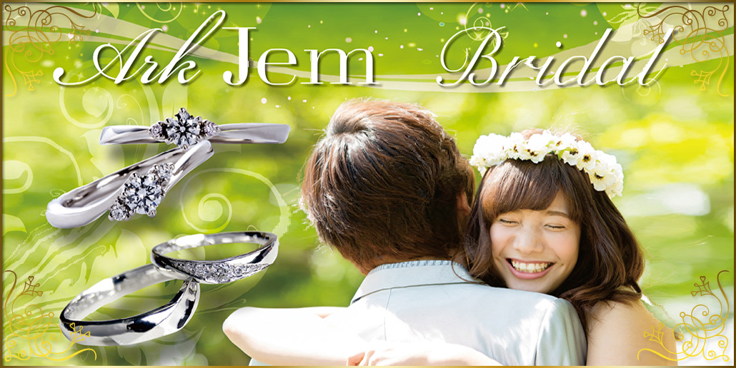 ArkJemでは、ブライダルジュエリーを一番大切に考えお客様にご提案しております。 それは、お持ちいただいたお客様のご一生のパートナージュエリーとなるからです。 新郎様、新婦様が愛を育み人生を共にしていく誓いのジュエリーであるからこそArkJemはジュエリーと共にスタッフの想いものせてお二人の一生の誓いを幸せへ繋げられるようにとセレクトしたブランドばかり。 また、品質、価格にも徹底的にこだわり、お似合いになるジュエリーは常識として、お客様の生活にも常に身に着けられるジュエリーデザインを提案いたします。 お買い物頂くまでがArkJemの仕事ではなく、お客様にお買い物頂いてからを大切なお客様とのお付き合いの本当の始まりとしてブライダルジュエリーを提案しています。
